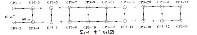 测量方法二:CPⅢ点与CPⅢ点之间的水准路线,采用如图3-4所示的水准路线形式进行。
