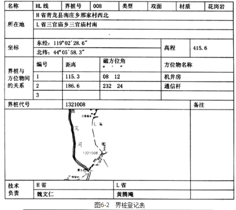 1.根据《行政区域界线测绘规范》(GB/T 17796—2009)第5.3条第4款规定,界桩点位置选定原则是:界桩位置应选在对反映边界线走向具有重要意义的边界点上或边界线附近,一般为实地地形不易辨别的边界线转折处、接线与河流相交处、过境道路与边界线相交处、以线状地物为界的边界线起始处等。