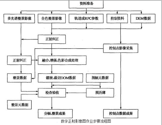 2.数字正射影像图的生产主要包括资料准备、色彩调整、DEM采集、影像纠正(融合)、影像镶嵌、图幅裁切、质量检查、成果整理与提交8个步骤。