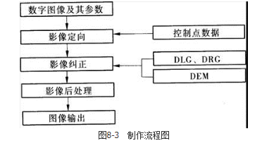 2.根据《遥感影像平面图制作规范》(GB/T 15968—2008)第5.2条第1款规定,数学法遥感影像平面原图的制作流程如图8-3所示。