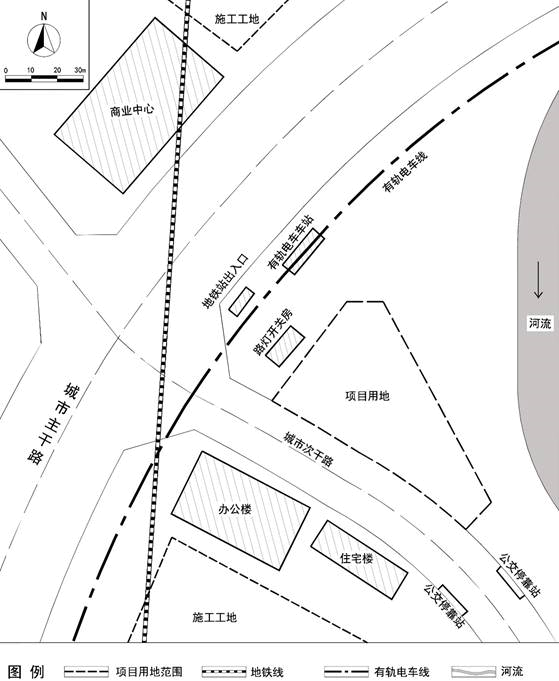 (6)考虑建筑退让道路、市政设施、地铁和有轨电车线、河流等控制线的要求。
