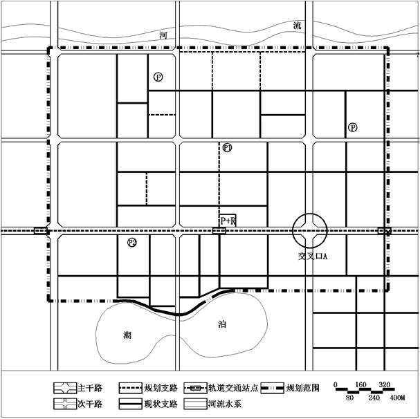 (5)P+R位置不合理,应布置在片区外围结合轨道站点布置,布置在中心起不到疏解交通的作用。