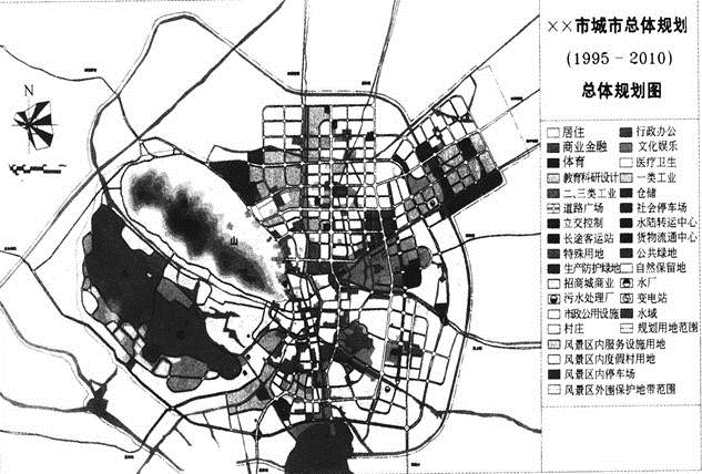(1)规划构思:该市是一个具有山、水、城为一体的城市格局和形态。此次规划强调在保持传统建城市格局特色的同时,又创造一个使城市在发展和更新中逐步走向未来的现代化城市。