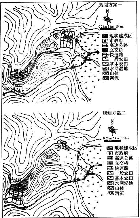 优点:①充分利用了东部用地条件较好的平原地区,未来发展余地大;②城市建设重点向东引导,有利于接受发达地区的经济辐射。