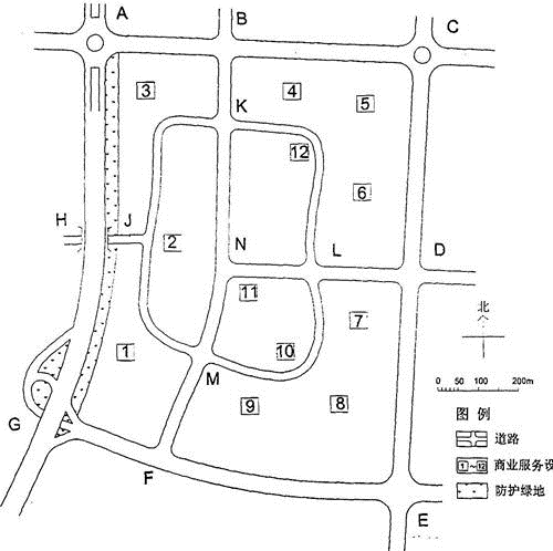 2.11为居住区商业服务中心;2、10、12为小区商业服务中心。