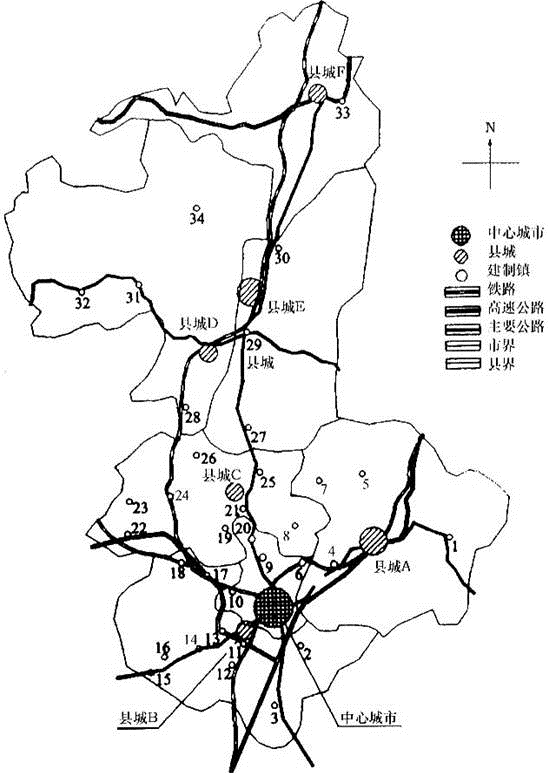 (1)重点镇应既能向上承接县城,又能向下辐射一般镇,因此应有较好的交通条件,靠近主要交通线。5号镇和34号镇不靠近主要交通线,而且北部为山地,34号镇因地形影响发展会受到限制,规划为重点镇明显脱离实际。
