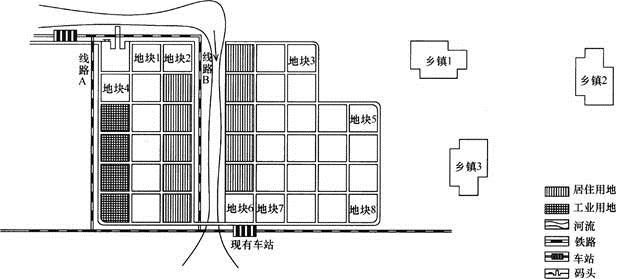 (3)农产品交易中心选址的基本原则为交通便利、靠近货物供应地区,方便与产地的交通联系,同时住宅作为农产品的供应地,农产品交易中心不宜离居住区过远;与住宅有一定的防护距离,避免噪声和交通的影响。依此来看,地块6、7距离现状车站和居住区较近,与产地有便利的公路和铁路交通支撑,便于服务居住区,建议地块6应适当考虑与现状居住区的防护距离。