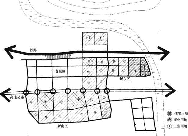 (4)跨越铁路北拓建设独立组团居住区有问题,造成北区和其他城区交通联系不便,不利于防洪。