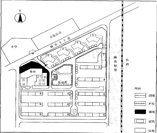 (7)以栏杆环绕组团绿地不利于居民使用,居住区围墙到商业和公司的部分未继续延伸,不利于小区安全。