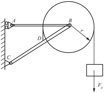 在图示结构中,己知AB=AC=2r,物重Fp,其余自重不计,则支座A的约束力为( )。