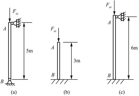 图示三根压杆均为细长(大柔度)压杆,且弯曲刚度均为EI。三根压杆的临界载荷Fcr的关系为( )。