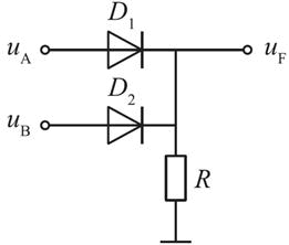 二极管应用电路如图所示,图中,uA=1V,uB=5V,设二极管均为理想器件,则输出电压uF( )。
