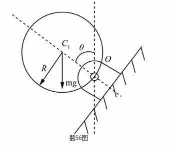单选题 均质圆柱体半径为R,质量为m,绕与纸面垂直的固定水平轴自由转动,初瞬时静止(θ=0°),如图所示,则圆柱体在任意