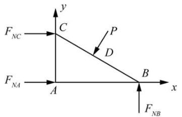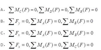单选题 三角形板ABC受平面力系作用如图示。欲求未知力FNA、FNB和FNC,独立的平衡方程组是( )。