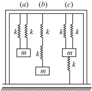 图示装置中,外框架是刚性的,已知质量m=200kg,弹簧刚度k=100N/cm,则图中各振动系统的频率为( )。