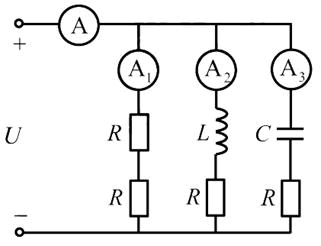 图示电路中,R=XL=XC,此时,4块电流表读数的关系为( )。