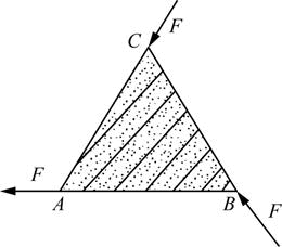 图示等边三角形ABC,边长为a,沿其边缘作用大小均为F的力,方向如图所示。则此力系向A点简化的结果为( )。