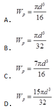 如图所示,空心圆轴的外径为D,内径为d,且D=2d,其抗扭截面系数为( )。