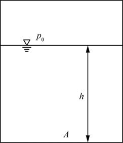 密闭水箱如图所示,已知水深h=2m,自由面上的压强p0=50kPa,当地大气压强pa=101kPa,则水箱底部A点的真空