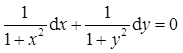 微分方程(1+y^2)dx+(1+x^2)dy=0满足条件y(1)=1的特解是(  )。