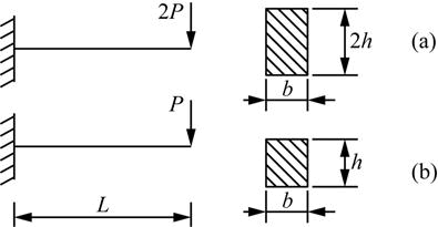 材料相同的悬臂梁a、b,所受荷载及截面尺寸如图所示。则两梁自由端挠度之比ya/yb为(  )。