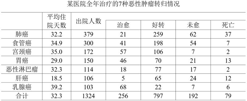 该医院全年治疗的7种恶性肿瘤出院病例中,平均住院天数长于合计平均住院天数的有多少种?