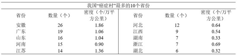 截至2013年,我国共有170个“癌症村”,分布于25个省市区。