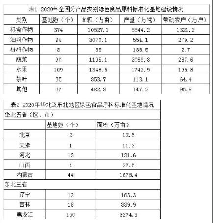 关于2020 年全国绿色食品原料标准化基地建设情况,能够从上述资料中推出的是( )。