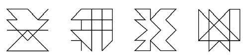 以下4 个图形中,去掉一条线段后为轴对称图形的有几个?(