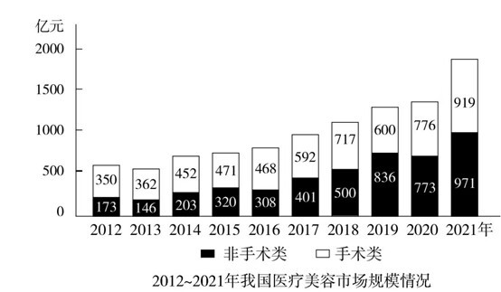 如2022年后每年的同比增量均与2021年的同比增量一致,则到2025年,我国非手术类医疗美容市场规模与手术类医疗美容市