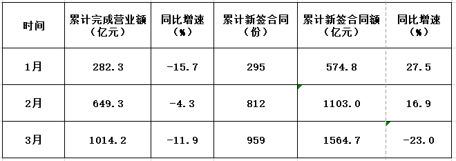 表1:2022年1-3月我国对外承包工程业务情况