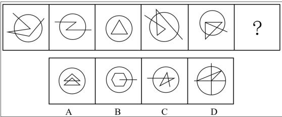 从所给的四个选项中,选择最合适的一个填入问号处,使之呈现一定的规律性:
