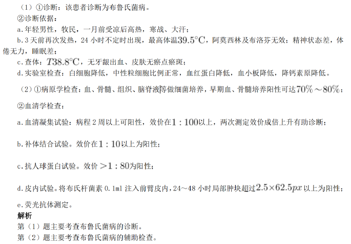 案例题 (分析题)【西医临床岗位试题】 患者,男,18岁,牧民。一月前受凉后出现发热,发热以午后居多,最高体温40C,伴