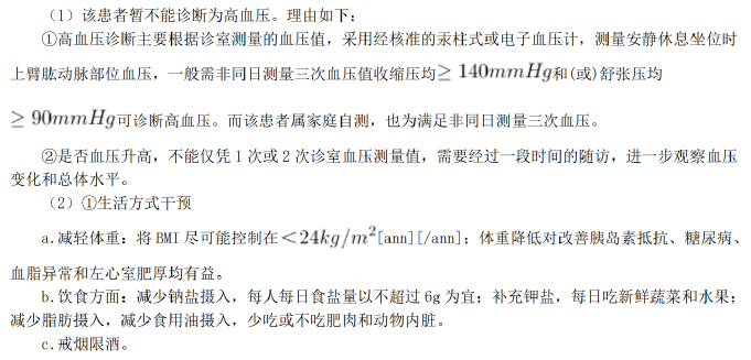 (1)目前,该患者可否诊断为高血压?请阐述理由。