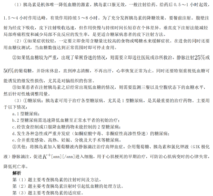 (2)患者因注射胰岛素出现饥饿、出汗、心跳加快、焦虑等症状的处理方法有哪些?