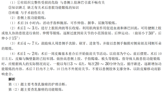 张某,女,45岁,会计,她发现右侧外上象限乳腺肿块,且近半年来肿块有增大趋势,肿块无肿痛等不适。来院经检查确诊为乳腺癌早期。于1天前在全麻下行右乳腺癌根治术,皮瓣下留置负压引流管一根,腋下引流管一根,T36.6°C,P73次分,R19次分,BP120/80mmHg。术后,右侧上肢臂围比左侧上肢臂围长5cm,述伤口疼痛,不敢活动,神情紧张,担心以后不能做账,影响工作。