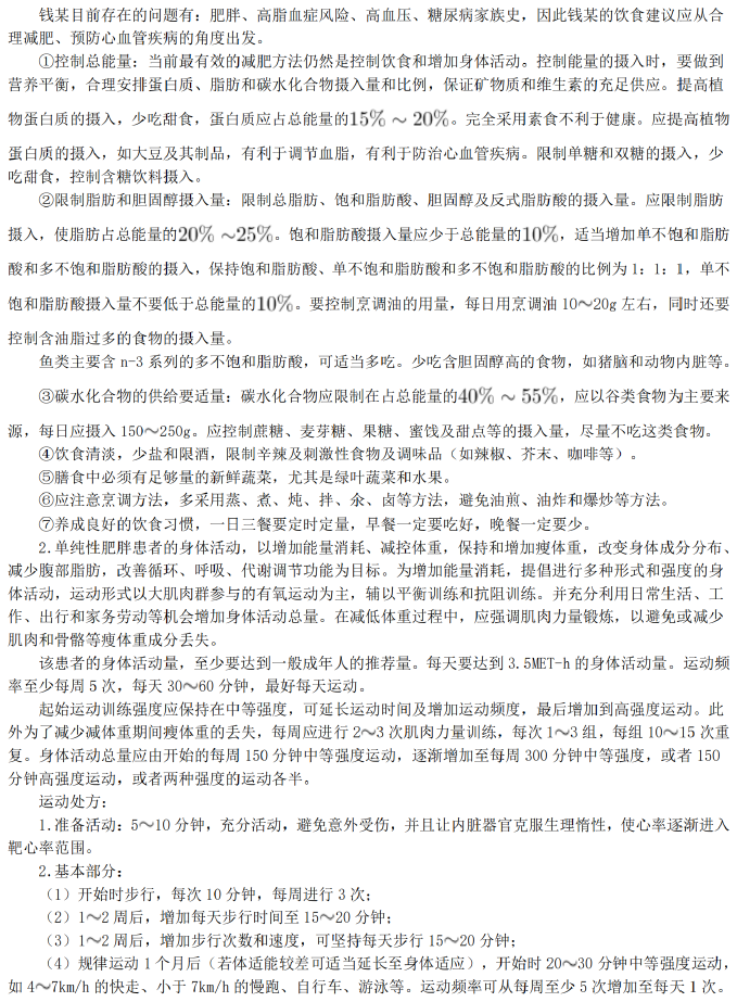 1.提出对钱某的饮食建议。