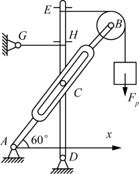 机构如图,杆ED的点H由水平绳拉住,其上的销钉C置于杆AB的光滑直槽中,各杆重均不计。已知Fp=10kN。销钉C处约束力