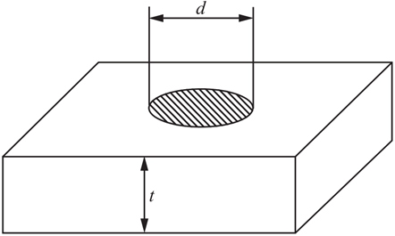 冲床的冲压力F=300πkN,钢板的厚度t=10mm,钢板的剪切强度极限τb=300MPa。冲床在钢板上可冲圆孔的最大直