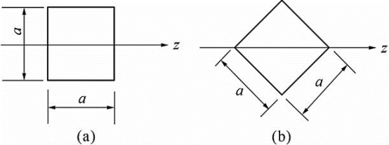 边长为a的正方形截面梁,按两种不同的形式放置,如图所示。在相同弯矩作用下两者最大正应力之比