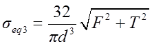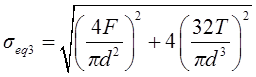 直径为d的圆轴,承受轴向拉力F和扭矩T。按第三强度理论,截面危险的相当应力σeq3为( )。