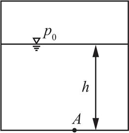 密闭水箱如图示,已知水深h=2m,自由面上的压强p0=88kN/m2,当地大气压强为pa=101kN/m2,则水箱底部A