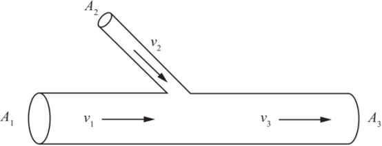 汇流水管如图所示,已知三部分水管的横截面积分别为A1=0.01m2,A2=0.005m2,A3=0.01m2,入流速度v