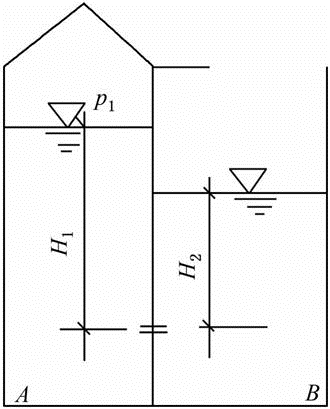水从A水箱通过直径为200mm的孔口流入B水箱,流量系数为0.62,设上游水面高程H1=3m,p1=5kPa,下游水面高