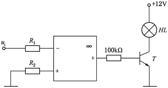 电路如图,运算放大器的最大输出电压为±12V,为了使灯HL亮,输入电压ui应满足( )。
