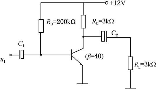 图为共发射极单管电压放大电路,估算静态点,IB、IC、VCE分别为( )。