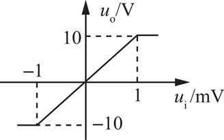 图(a)所示运算放大器的输出与输入之间的关系如图(b)所示,若ui=2sinωtmV,则uo为( )。