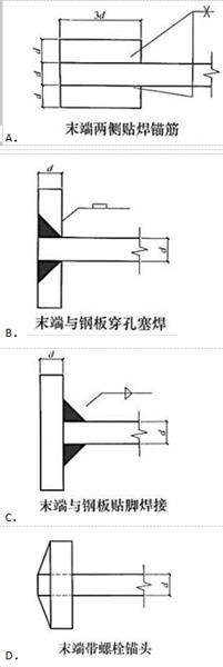 单选题 图示纵向钢筋机械锚固形式中,错误的是( )。