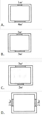 单选题 相同面积、相同层数的建筑物,设计成下面四种开窗情况,其中围护结构采暖热负荷较小的是( )。(图示为上北下南,数字为窗面积)