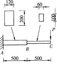 变截面悬臂梁端部受集中力P作用,两个截面的尺寸如图所示,已知弯曲允许正应力[σ]=10MPa,则荷载P的最大允许值为(